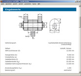 Für ein komfortables Arbeiten steht eine umfangreiche Werkstoffdatenbank zur Verfügung. Es besteht auch die Möglichkeit, Werkstoffe manuell einzugeben. Dabei können das Elastizitätsmodul, die Zugfestigkeit, die Werkstoffart und die Streckgrenze vorgegeben werden. Die zulässigen Pressungen werden aus der Streckgrenze oder Zugfestigkeit ermittelt. Sie können aber auch manuell vorgegeben werden.