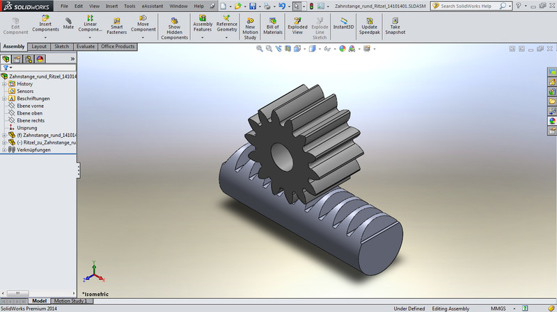 This gear calculation module allows a simple calculation of the geometry and load capacity of rack-pinion gear pairs. The geometry calculation is based on DIN 3960, DIN 3961, DIN 3964, DIN 3967, DIN 3977 and DIN 868. Spur and helical involute pinions are possible to calculate. Profile shift, addendum chamfer and allowances will be taken into consideration. Gear quality and tooth thickness tolerances can be comfortably selected from listboxes. The working centre distance can be either defined for the calculation or determined from the profile shift. Different standardised tool basic rack profiles according to ISO 53, DIN 867 and DIN 3972 can be selected or defined individually for the calculation. Full-depth teeth and stub tooth gears can be calculated as well. Furthermore, the test dimensions for the gearing are determined. For that, the required number of teeth for the span measurement as well as the ball or pin diameter will be determined automatically. Optionally, the values can be defined by the user. In addition, a backward calculation of the tooth thickness allowances from the test dimensions is also possible.