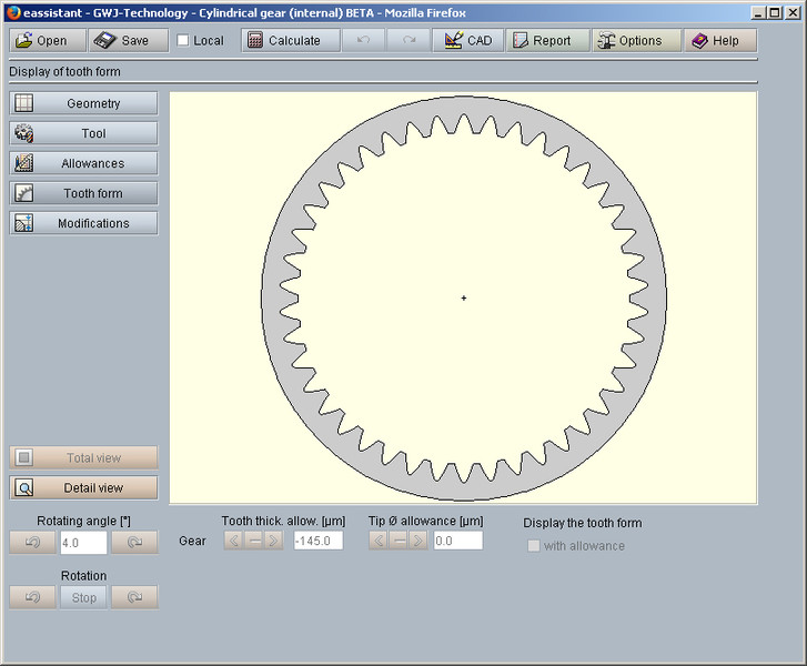 One particular highlight of the calculation module is the representation of the calculated gear tooth form. For this representation, the minimum, mean and maximum allowances for the tooth thicknesses and tip diameters can be selected. The program also gives hints and warnings, for example in terms of gear tolerances which appear in the calculation report depending on the gear quality.