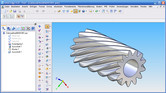 A partir del módulo de cálculo de los engranajes cilíndricos, pueden generarse automáticamente en 3D, engranajes helicoidales rectos o curvos. Se tendrán el cuenta las tolerancias, los fraccionamiento de cantos, los cambio de perfiles y los diámetros de los ejes y se modelará la forma exacta de los dientes.
