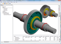 3D geometries of gear bodies can be defined using either a polygon or the direct import via 3D STEP / IGES. It is thereby possible to define forces and bearings directly on 3D elastic parts. The extended rolling bearing calculation allows the use of elastic bearing rings for even more detailed analyses.