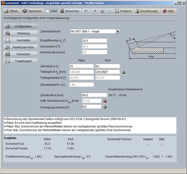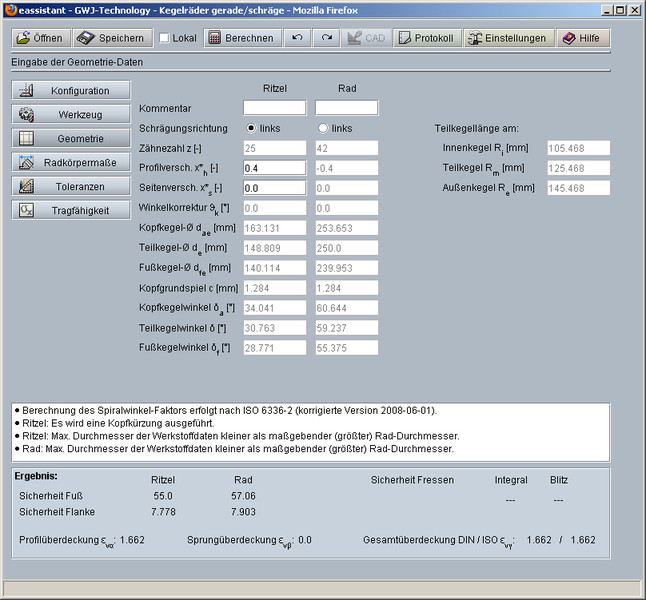 Obok obliczeń geometrii istnieje możliwość obliczania nośności w oparciu o normę ISO 10300 metodę B1, określenie zabezpieczeń (granic wytrzymałości) na przestrzeni danego czasu czyli tzw. trwałości eksploatacyjnej. Podczas obliczeń określone zostają parametry pozwalające na uniknięcie uszkodzeń zębów jak: zmęczenie powierzchniowe, załamanie zmęczeniowe, zatarcie. Odpowiednie obliczenia geometryczne, dobór odpowiednich materiałów jak również środków smarnych pozwalają na ich eliminację oraz uzyskanie optymalnych warunków wytrzymałościowych już w procesach projektowych.