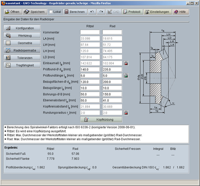 Moduł ten pozwala na łatwe i szybkie obliczanie geometrii stożkowych kół zębatych