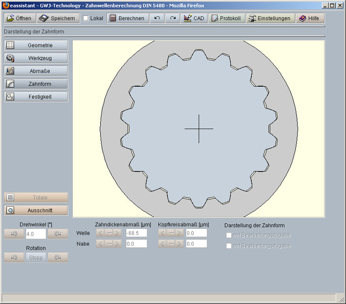 W celu ustalenia tolerancji, jakość uzębienia i cały szereg parametrów są określane zgodnie z normą DIN 5480, dla ułatwienia są one podane w formie list wyboru, z których można wybrać odpowiednie wartości. Dzięki czemu dopuszczalne odchylenia od wielkości zębów określonych w normie, są automatycznie podawane przez program.