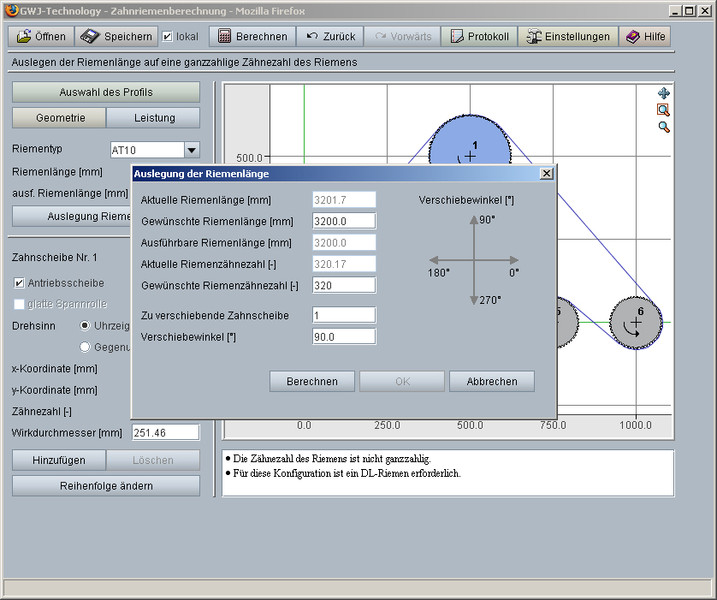 Interaktywna grafika konfiguracji przekładni pasowej.
