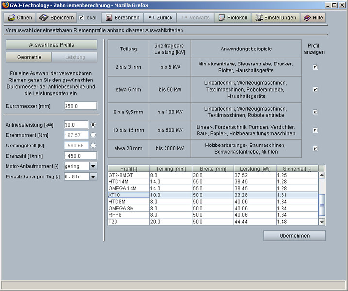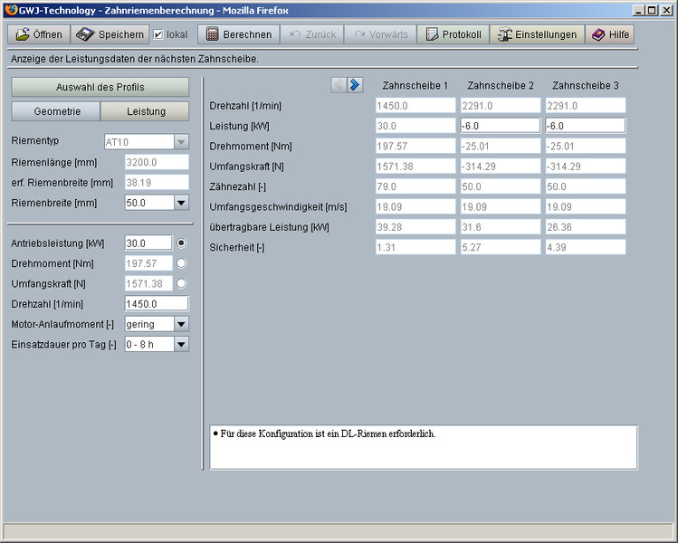 Obliczenia wydajności według „Zahnriemengetriebe - Eigenschaften, Normung Berechnung, Gestaltung“, Nagel, Hanser Verlag 2008