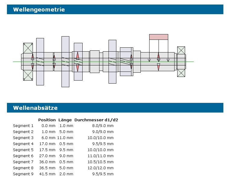 Se han tomado en cuenta, todos los estándares generalmente reconocido. Un ejemplo sería la utilización de la ultima versión de la norma DIN 743 para el cálculo de la fuerza de los ejes. Los módulos de cálculo se manejan de una forma facil, clara e intuitiva, particularmente en los gráficos interactivos en el cálculo de ejes. Aqui a partir de la geometria de los ejes, se pueden definir elementos como la fuerza o los cojinetes. El usuario tendrá acceso a diferentes bases de datos como geometría o materiales que le simplificarán el trabajo y le ahorraran tiempo.