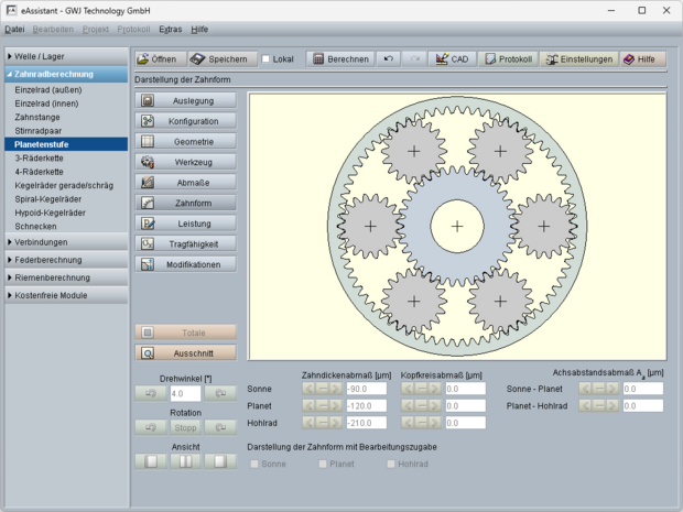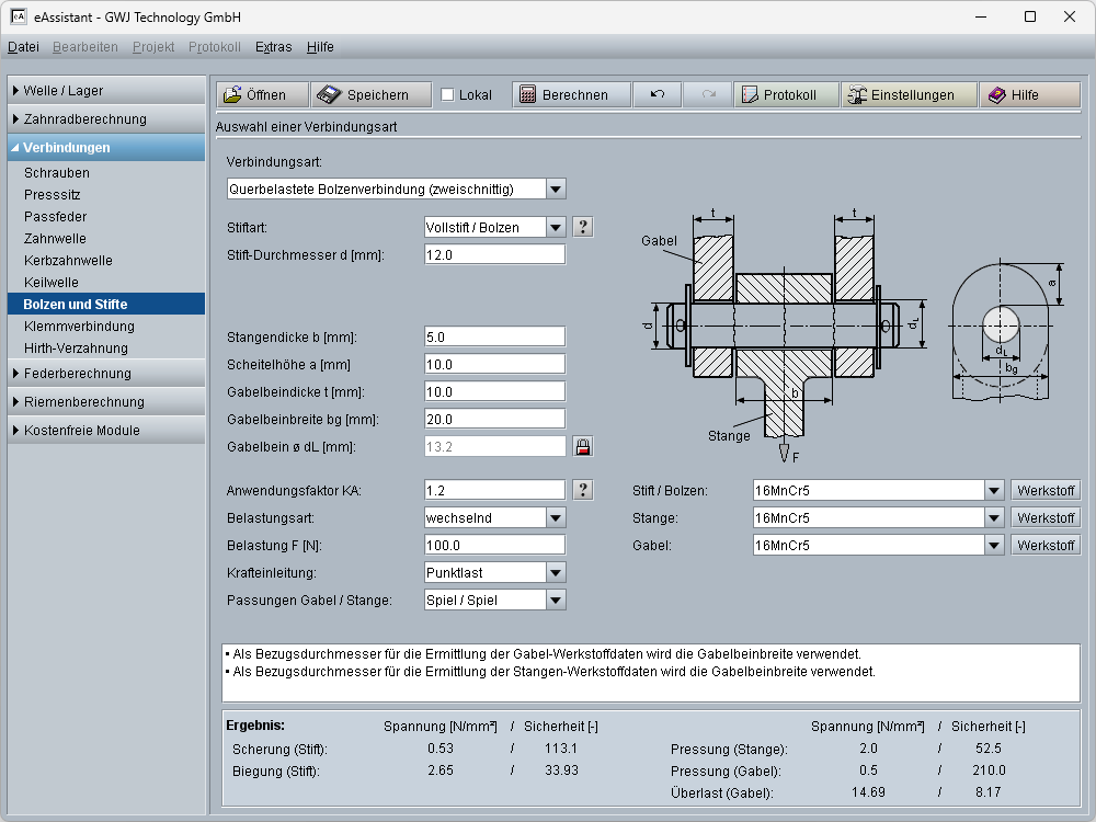 Es stehen verschiedene Berechnungsmodule, wie z. B. für Wellen, Welle-Nabe Verbindungen, Federn oder Zahnriementriebe, zur Verfügung.