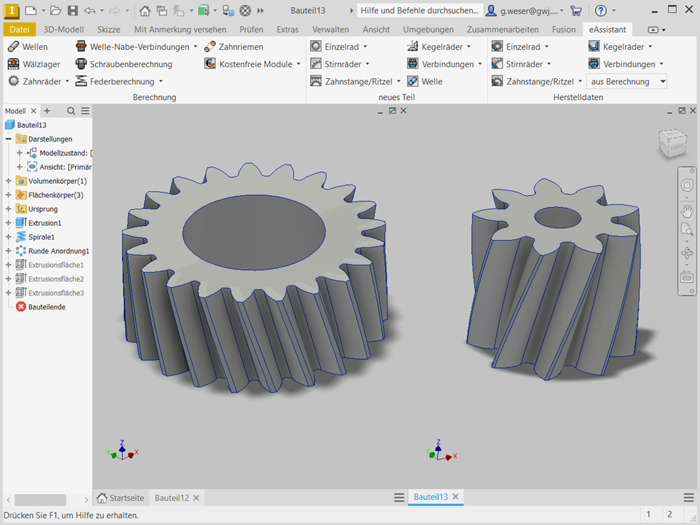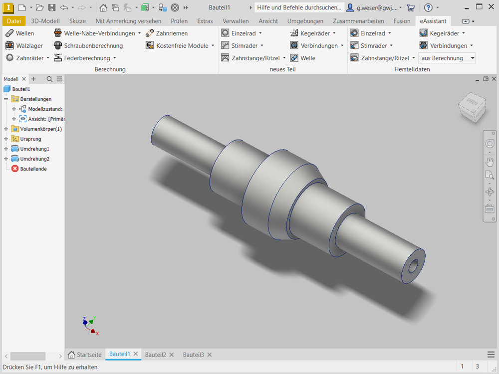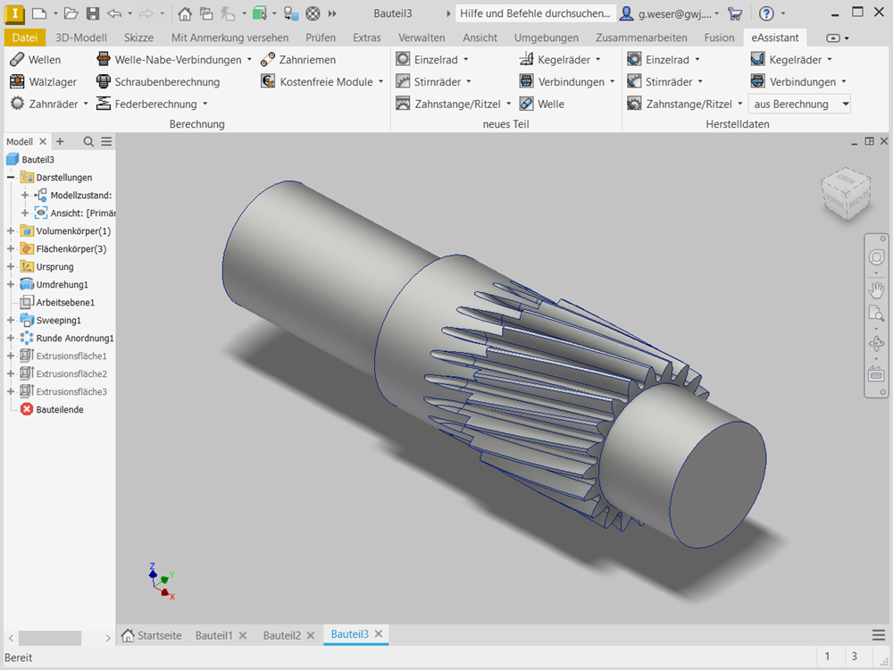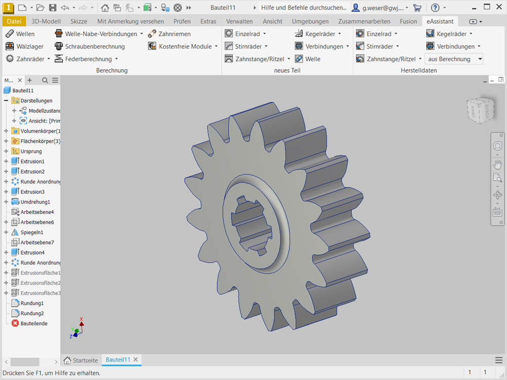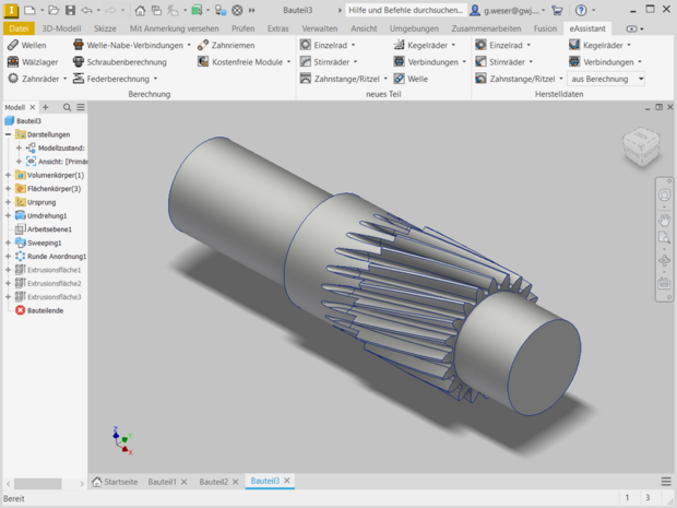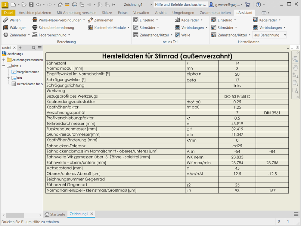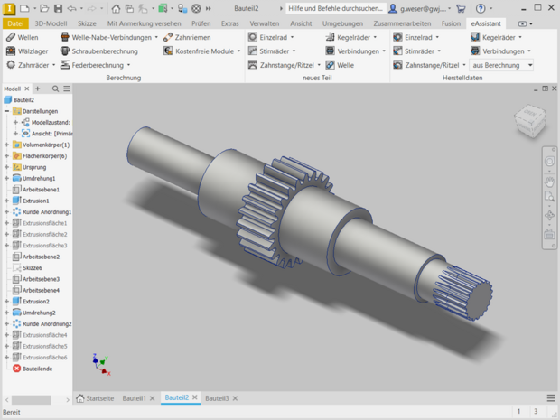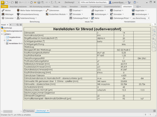 - Bidirektionale Zusammenarbeit zwischen eAssistant und Autodesk Inventor (Welle, Stirnrad oder Zahnwellen-/Zahnnabenprofil als Einzelteil)