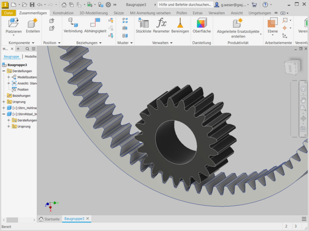 - Auf Basis der Berechnung können schräg- oder geradverzahnte Stirnräder außen- und innenverzahnt automatisch direkt als 3D-Autodesk Inventor-Teil generiert werden.