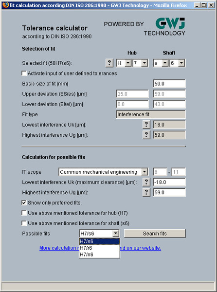 Using this module, the determination of the deviations from different tolerance fits for a given nominal diameter is very easy. All IT classes (qualities) and tolerance fields according to DIN ISO 286 can be selected.