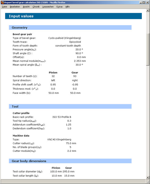 Based on a virtual spur gear toothing, transverse contact ratio, overlap contact ratio and total contact ratio are calculated in accordance with ISO 23509. Turning dimensions with lengths of cone and angles are determined. Other gear body parameters, including tip circle distance and mounting distance, are determined as well. The user can modify the mounting distance. The module provides proposals for the amount of backlash according to Klingelnberg or Niemann. A backlash can be defined individually.
