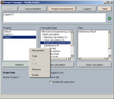 The project manager helps to manage all projects and calculation files. Based on an integrated filter function, the project manager allows for the user to assign calculation files to a project. Calculations files can be displayed within a specific module or across modules. Projects and calculation files can be copied, renamed or deleted.