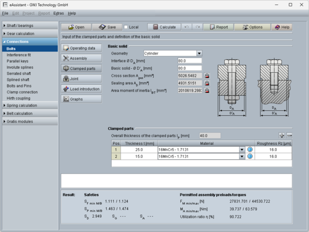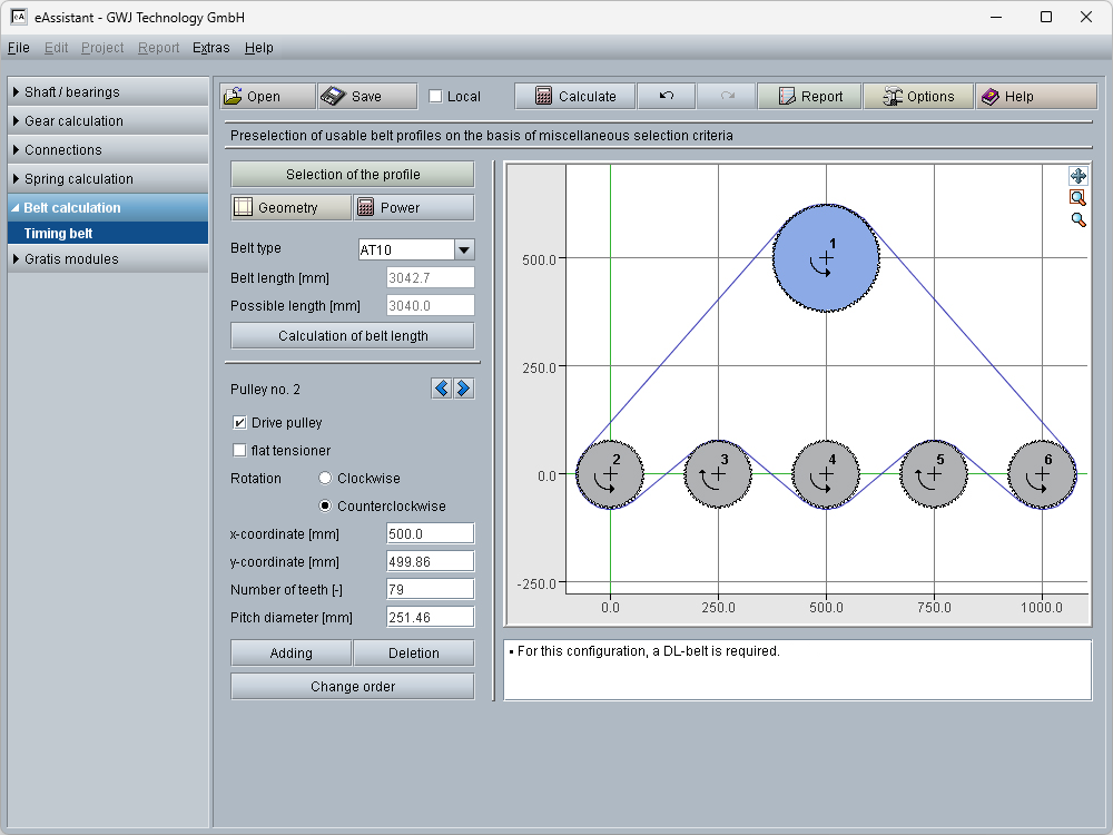 Various calculation modules are available, for example for shafts, shaft-hub connections, springs, or timing belt drives.