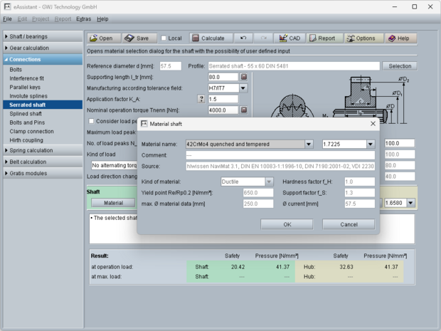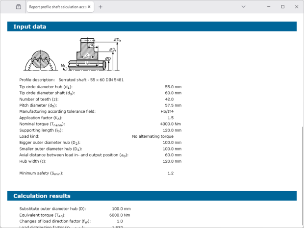 - Strength calculation based on Niemann for serrated shafts according to DIN 5481