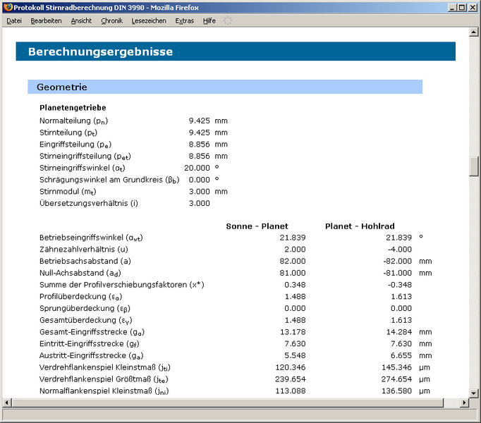 Junto al cálculo geométrico también se determinarán torsiones, revoluciones e incluso de revoluciones relativas de los planetas como también rendimiento evolvente el rendimiento de acoplamiento, asi como la fuerza periférica del contrete y la fuerza centrifuga planetaría.