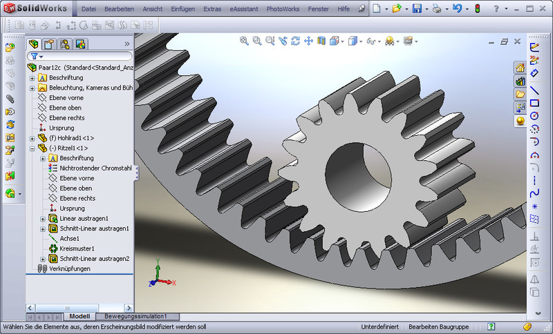 A partir del módulo de cálculo de los engranajes cilíndricos, pueden generarse automáticamente en 3D, engranajes helicoidales rectos o curvos. Se tendrán el cuenta las tolerancias, los fraccionamiento de cantos, los cambio de perfiles y los diámetros de los ejes y se modelará la forma exacta de los dientes.
