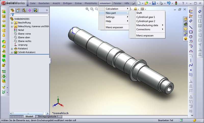 Todos los módulos de cálculo del eAssistant pueden iniciarse a través de un sistema integrado en el menú de SOLIDWORKS.