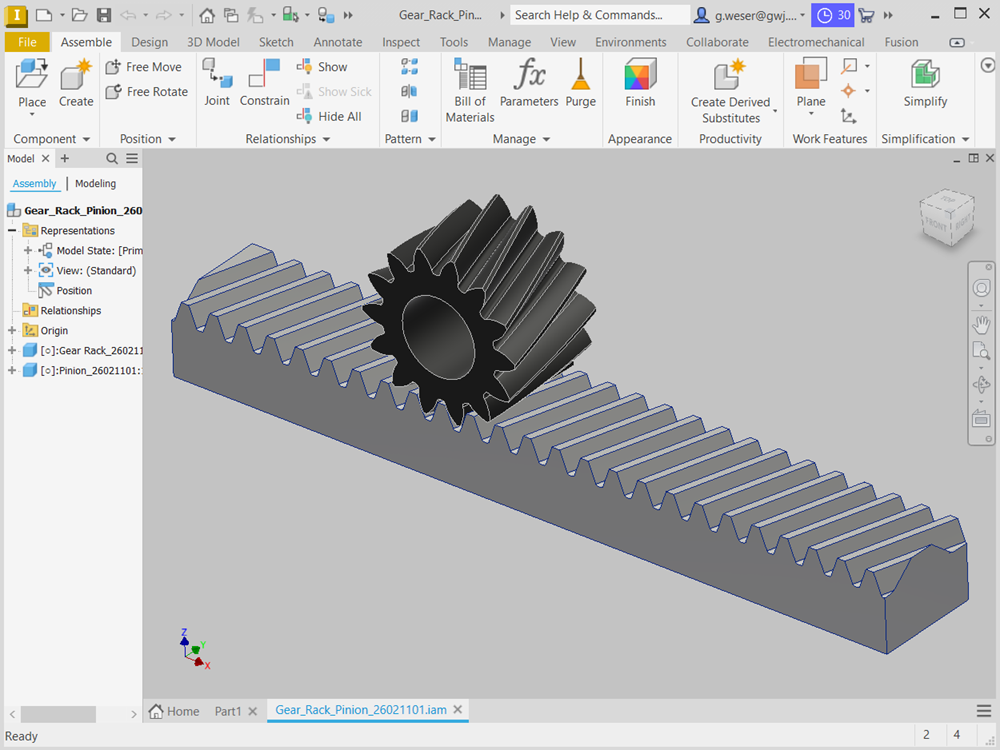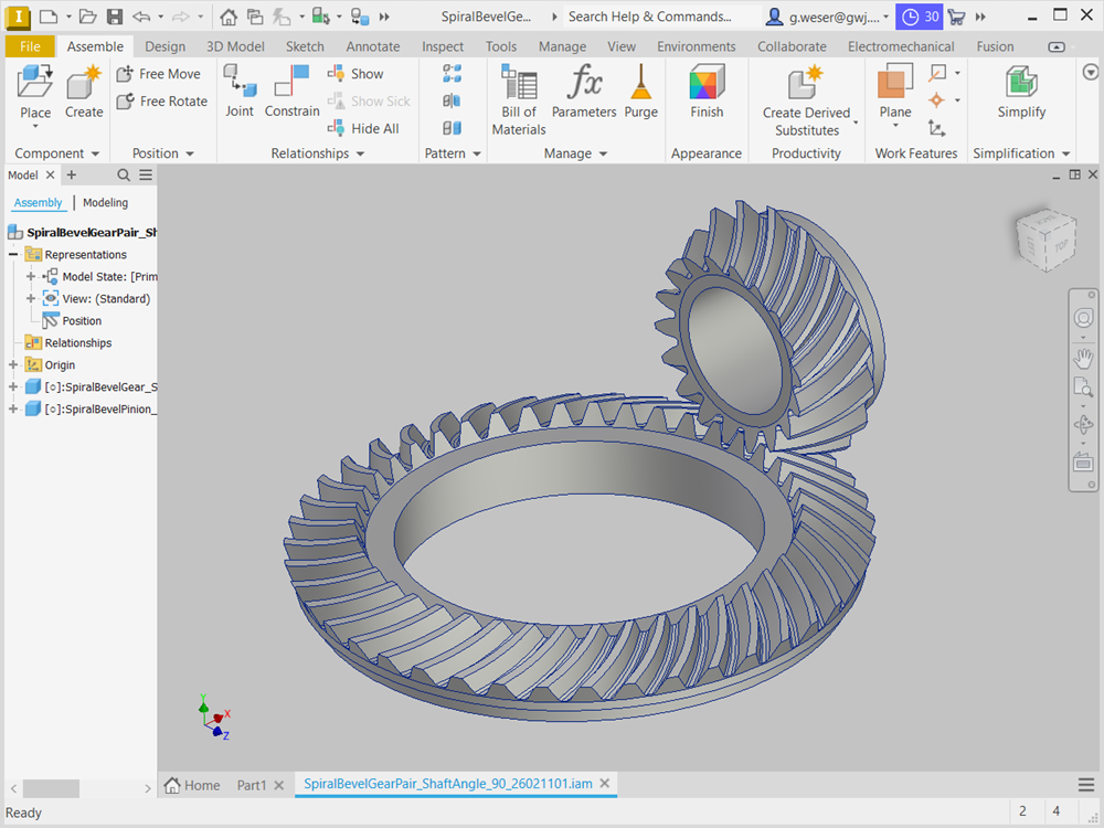 - A partir d'un calcul, les roues cylindriques à dents droites et hélicoïdales externes et internes peuvent être générées automatiquement en 3D dans Autodesk Inventor.