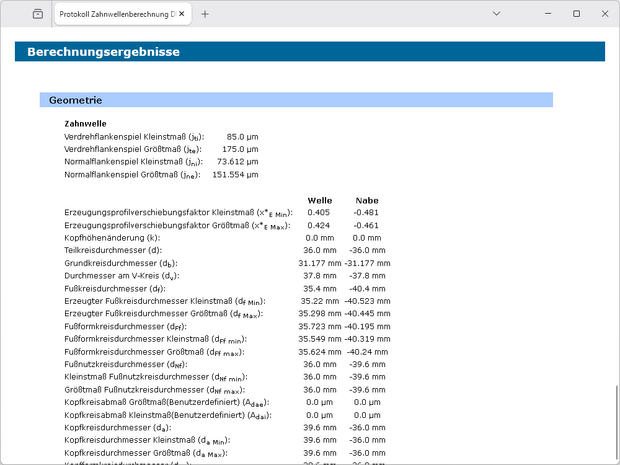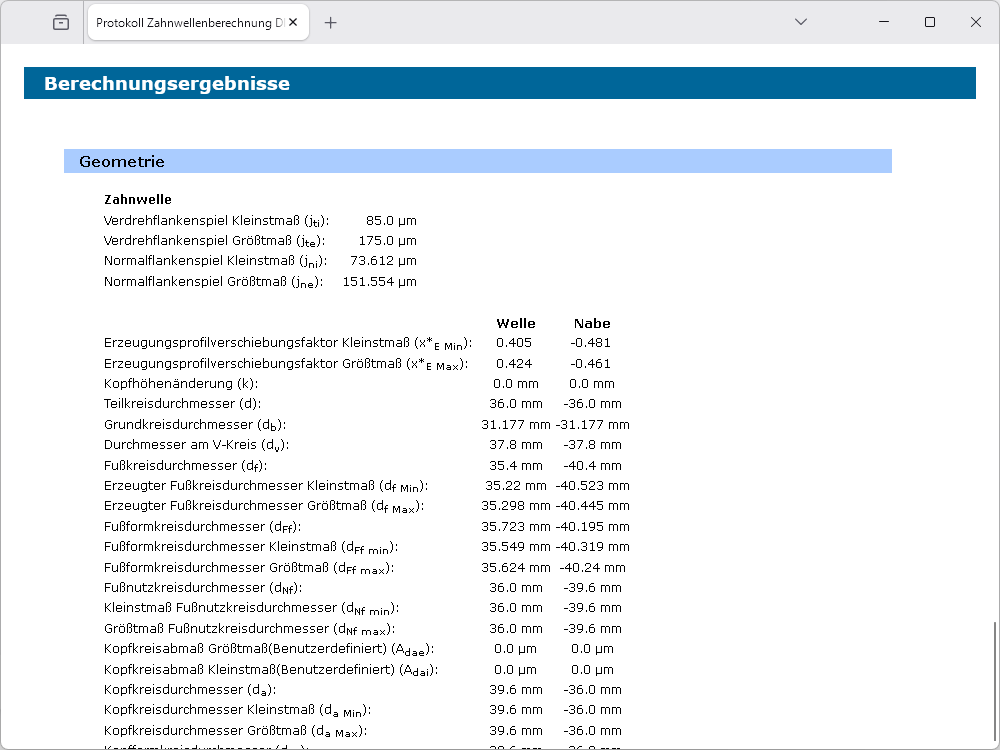 - Berechnung des Normal- und Verdrehflankenspiels