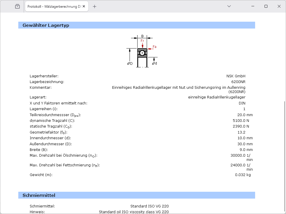 - Berechnung nomineller und erweiterter Lebensdauer nach DIN ISO 281 inkl. Beiblatt 1 (Ausgabe April 2003)