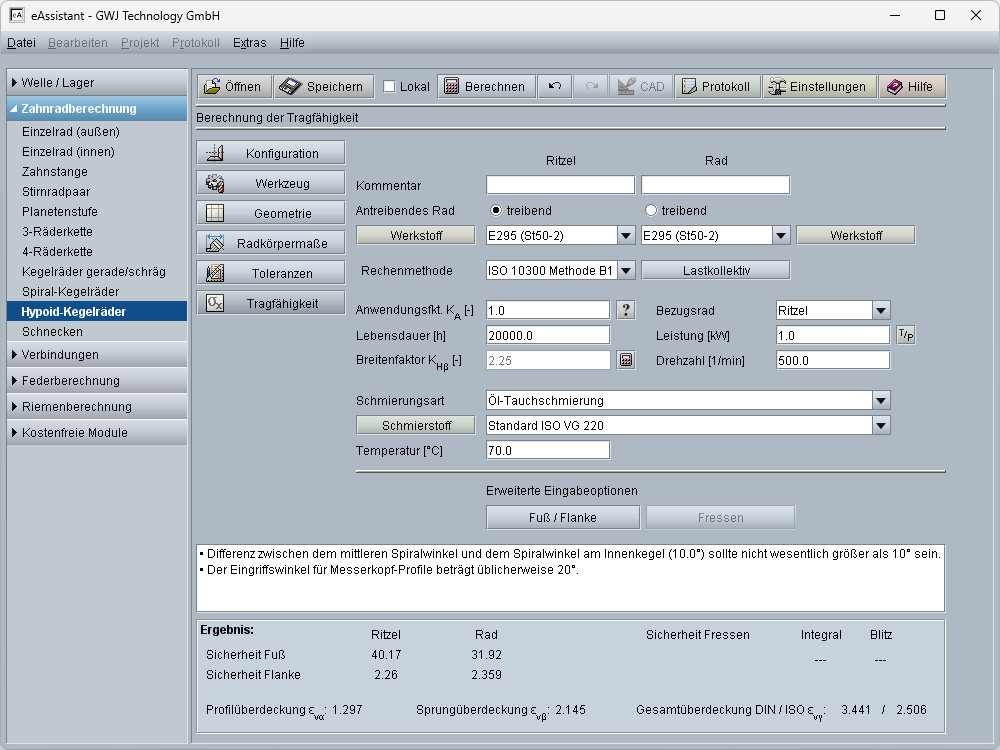 - Festigkeit nach ISO 10300 Methode B1