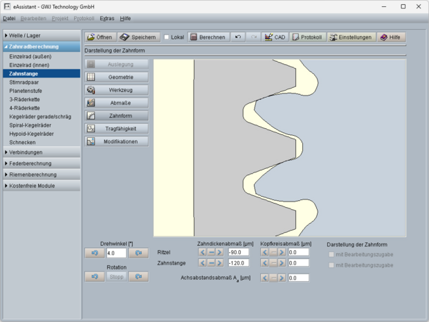 - Vorgabe des Betriebsachsabstandes oder Berechnung aus vorgegebener Profilverschiebung