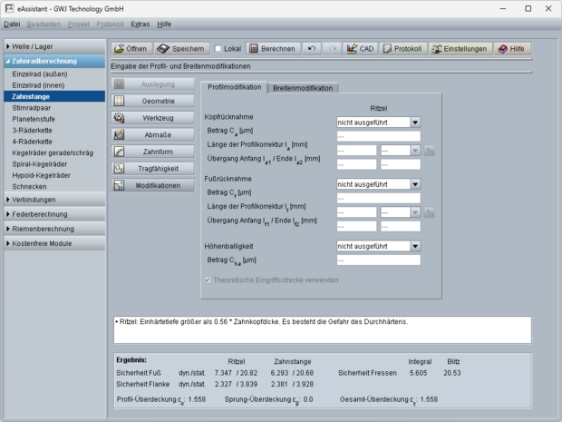 - Vorgabe von Flankenmodifikationen: Endrücknahme, symmetrische und asymmetrische Breitenballigkeit
