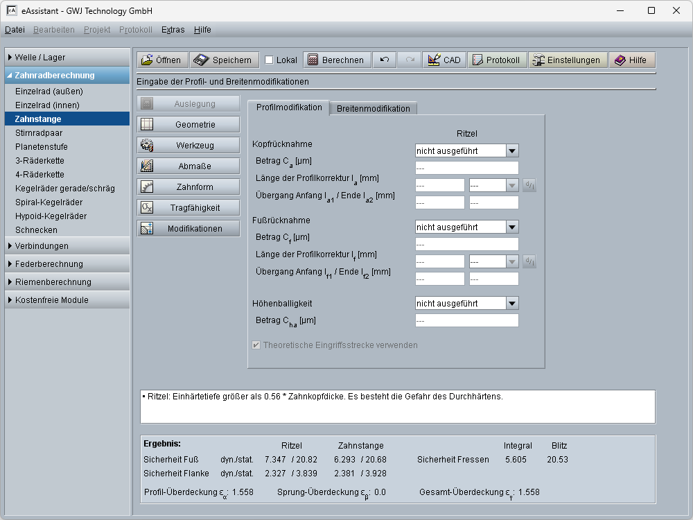 - Berücksichtigung der Profilverschiebung mit Auslegungsfunktion für ausgeglichenes spezifisches Gleiten