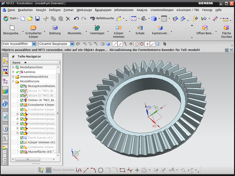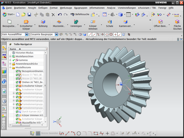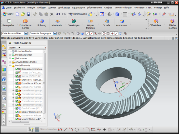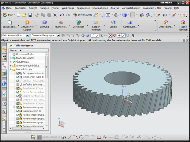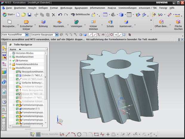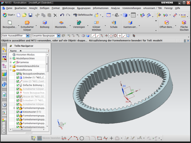 Dzięki inteligentnej wtyczce CAD wszystkie moduły obliczeniowe programu eAssistant mogą być wywoływane bezpośrednio z menu oprogramowania NX, umożliwiając tym samym utworzenie modelu 3D za pomocą jednego kliknięcia.