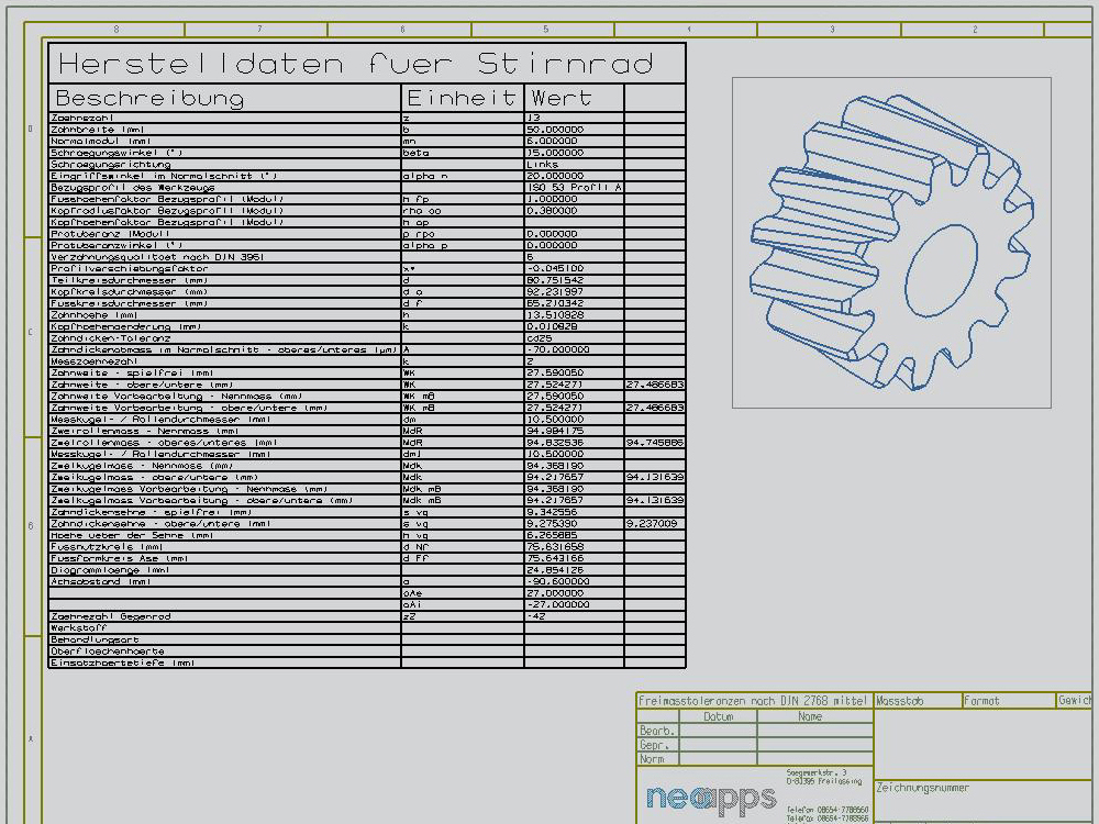 - Dane produkcyjne kół zębatych można w łatwy i szybki sposób umieścić na rysunku roboczym w formie tabeli.