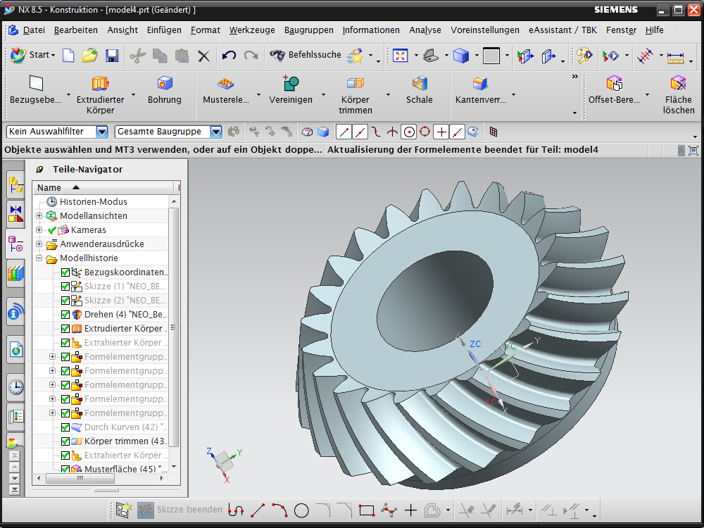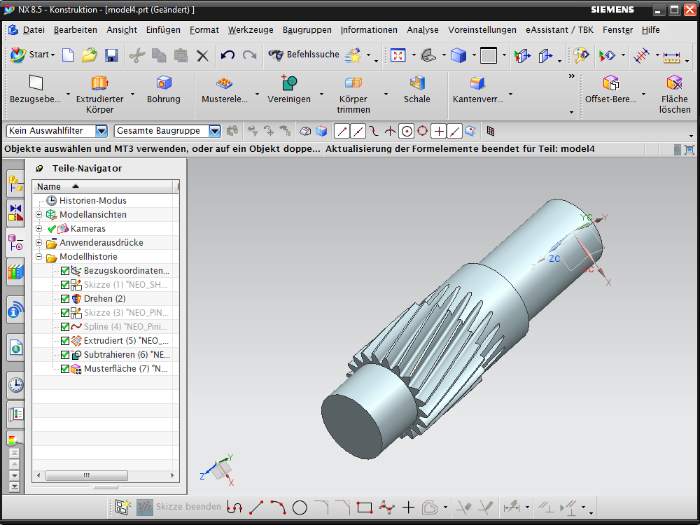 - Dwustronna komunikacja pomiędzy eAssistant i NX (wały, pojedyncze wałki zębate).