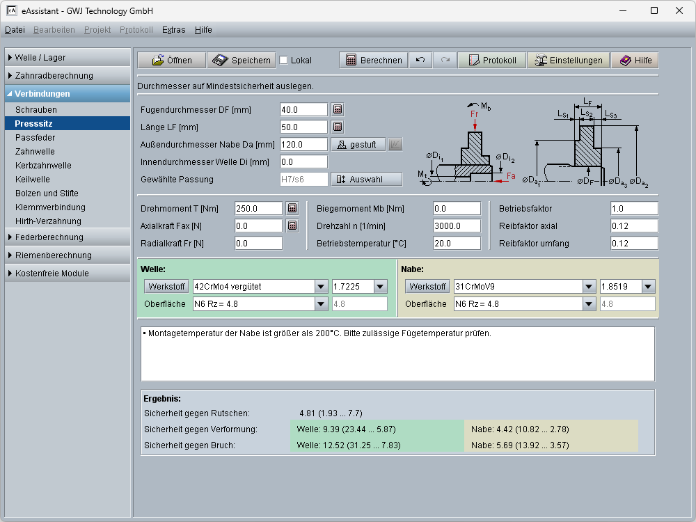 In diesem Seminar geht es um die Auslegung, Nachrechnung und Optimierung von Welle-Nabe-Verbindungen, wie Presssitz, Passfeder, Zahnwelle, Klemmverbindungen und andere. Dabei kommt die leistungsfähige Berechnungssoftware eAssistant/TBK zum Einsatz. Die Teilnehmer erhalten sowohl eine Einführung in die Bedienung der Software als auch praktische Tipps zur Anwendung.